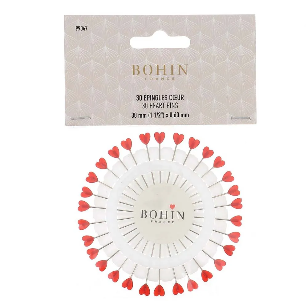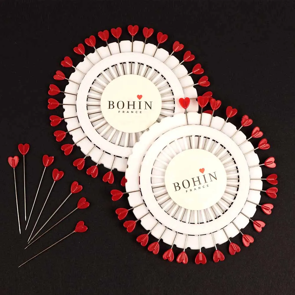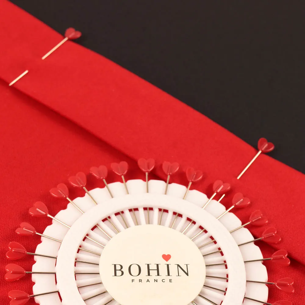 Šios Bohin adatėlės ypač tvirtos ir lanksčios, pagamintos iš nikeliu padengto plieno, kuris yra atsparus rūdijimui. Plastikinės galvutės yra ryškiai raudonos spalvos, todėl jas lengva rasti darbo vietoje. Plokščia galvutė apsaugo nuo audinio iškilimų siuvant. „Bohin“ smeigtukai yra 38 mm ilgio ir 0,60 mm pločio.