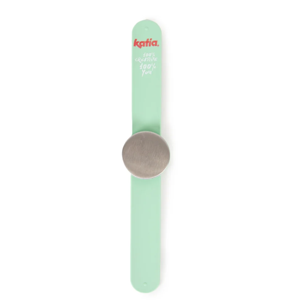 Praktiška ir stilinga Katia apvali magnetinė apyrankė – nepakeičiamas pagalbininkas mezgant ar siuvant. Ši apyrankė leidžia visus smulkius, bet svarbius priedus laikyti visada po ranka.: mezgimo žymeklius, smeigtukus, metalinius akių žymeklius ar magnetinį eilių skaitiklį.