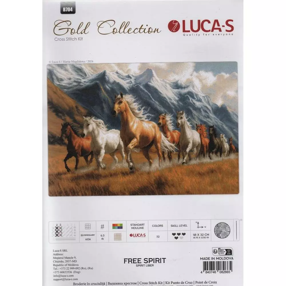 Luca-S GOLD siuvinėjimo kryželiu rinkinys „Laisva dvasia“ – aukščiausios kokybės premium rinkinys su Zweigart Aida16 audiniu ir Luca-S 100 % medvilniniais siūlais (72 spalvos). Šis siuvinėjimo kryželiu rinkinys skirtas pažengusiems (4/5) ir leidžia sukurti didelį, įspūdingą bei detalią kompoziciją. Idealus pasirinkimas kūrybai, atsipalaidavimui ar išskirtinei dovanai.