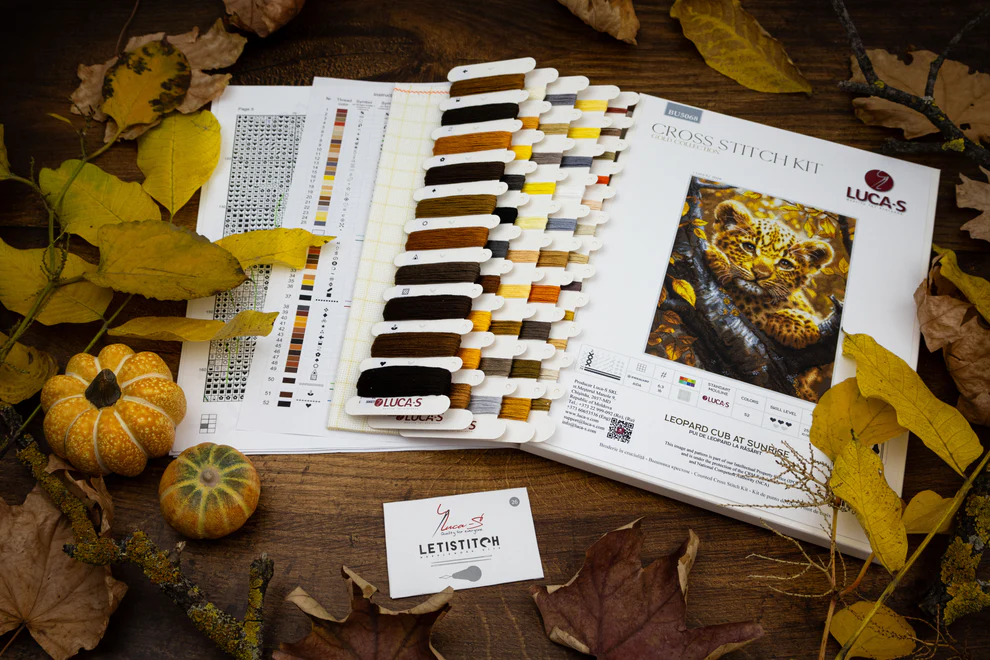Luca-S GOLD siuvinėjimo kryželiu rinkinys „Leopardo jauniklis saulėtekyje“ – aukščiausios kokybės premium rinkinys su Zweigart Aida16 audiniu ir Luca-S 100 % medvilniniais siūlais (52 spalvos). Šis siuvinėjimo kryželiu rinkinys puikiai tinka pažengusiems (3/5) ir leidžia sukurti įspūdingą laukinės gamtos sceną. Idealus pasirinkimas kūrybai, atsipalaidavimui ar išskirtinei dovanai.