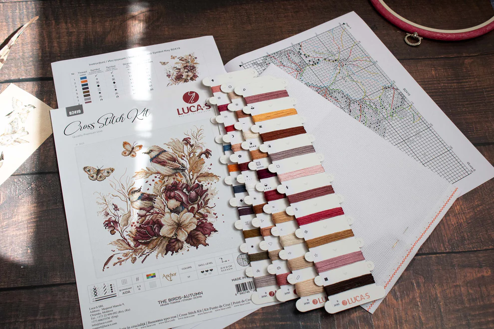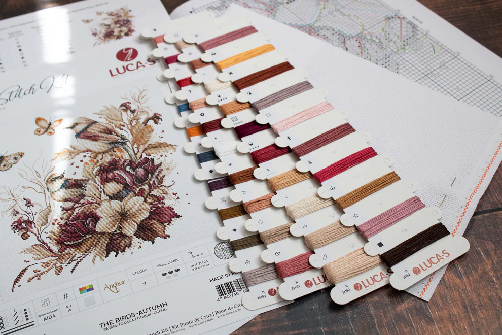Luca-S siuvinėjimo kryželiu rinkinys „Paukščiai – ruduo“ – premium kokybės rinkinys su Zweigart Aida16 audiniu ir Anchor 100 % medvilniniais siūlais (37 spalvos). Šis siuvinėjimo rinkinys puikiai tinka pažengusiems (3/5) ir leidžia sukurti elegantišką rudens motyvą su paukščiais. Idealus pasirinkimas kūrybai ar dovanai.